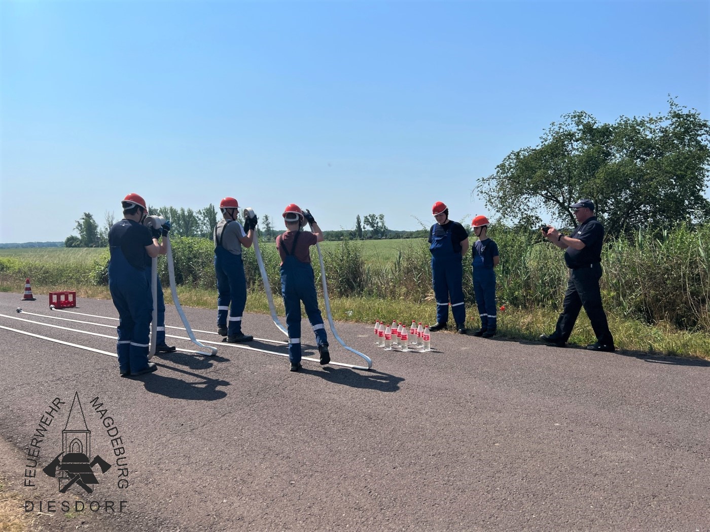 Zu einer Fortbildung in der Brandübungsanlage der Firma FeuRex machten sich am Samstag, den 31.08.2024 fünf Diesdorfer Kameraden auf den Weg nach Helmstedt. Dort besteht die Möglichkeit, das Löschen von holzbefeuerten Innenraumbränden realitätsnah zu trainieren.