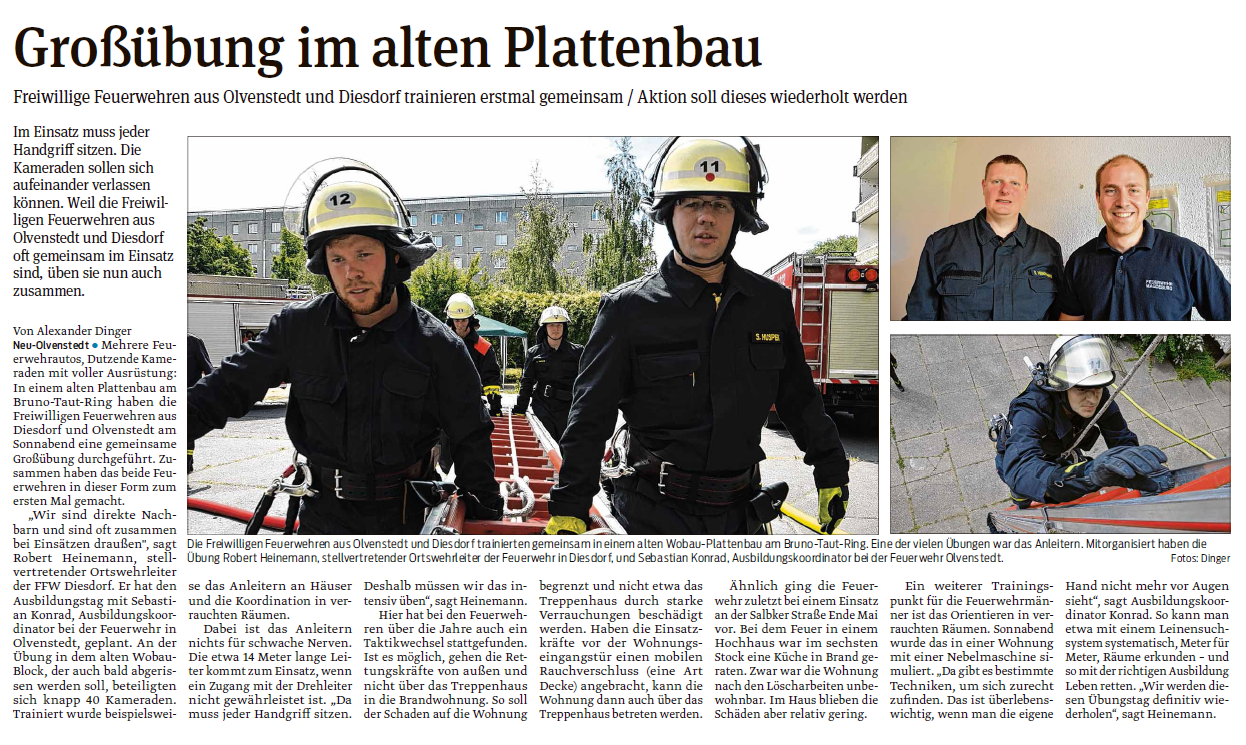 Ausbildung mit der FF Olvenstedt Die Feuerwehren aus Diesdorf und Olvenstedt haben gemeinsam in einem leerstehenden Plattenbau geübt. Thema waren moderne Techniken der Brandbekämpfung. Vorheriger Beitrag: Jugend zeigt was sie kann Zurück Nächster Beitrag: Forschungsprojekt in Frankfurt a. M. Weiter