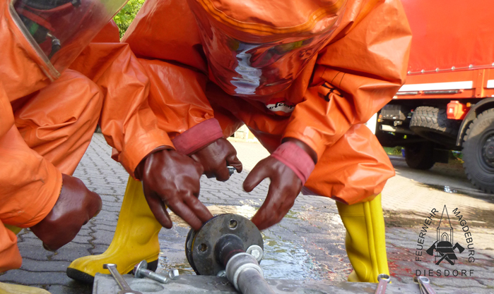 Hierzu werden praktische Einsatzbeispiele, typische Arbeitshandlungen und das gemeinsame Arbeiten unter persönlicher Sonderausrüstung (CSA) geübt. Gemeinsam mit der Freiwilligen Feuerwehr Beyendorf-Sohlen wurde dieses Jahr im Juni diese jährliche Belastungsübung durchgeführt.