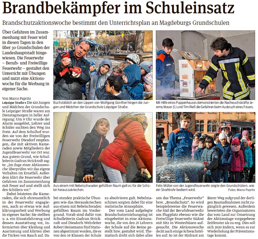 Brandschutzerziehung an Magdeburger Grundschule Lesen Sie, was die Volksstimme über uns berichtet. Vorheriger Beitrag: Jugendlöschangriff 2019 Zurück Nächster Beitrag: Jahresbericht der Feuerwehr Magdeburg 2018 Weiter