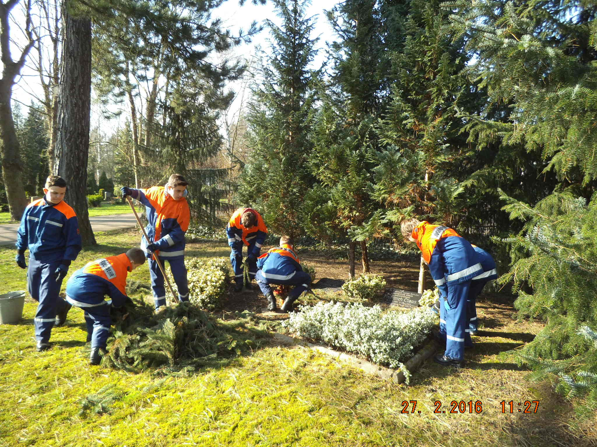 Für den Bereich der allgemeinen Jugendarbeit haben sich die Jugendlichen bereits im Februar während eines Dienstabends die Zeit genommen, das Gemeinschaftsgrab dreier Berufsfeuerwehrleute zu pflegen. Diese starben 1923 durch eine Explosion während der Durchführung von Löscharbeiten bei einem Dachstuhlbrand und wurden auf dem Westfriedhof beigesetzt. Seit 1997 – und somit seit knapp 20 Jahren - übernimmt die Jugendfeuerwehr aus Diesdorf die Patenschaft für die gemeinsame Grabstelle. Das Grab wird gepflegt, bepflanzt, im Sommer regelmäßig gegossen und zum Totensonntag mit Tannengrün und Gestecken abgedeckt.