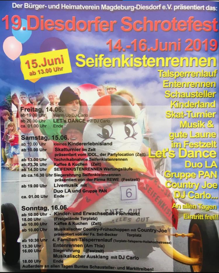 Auch im diesen Jahr unterstützen die Frewillige Feuerwehr Magdeburg-Diesdorf und der Förderverein der Frewiligen Feuerwehr tatkräftig das Schrotefest vom 14.06. bis 16.06.2019 in Diesdorf.