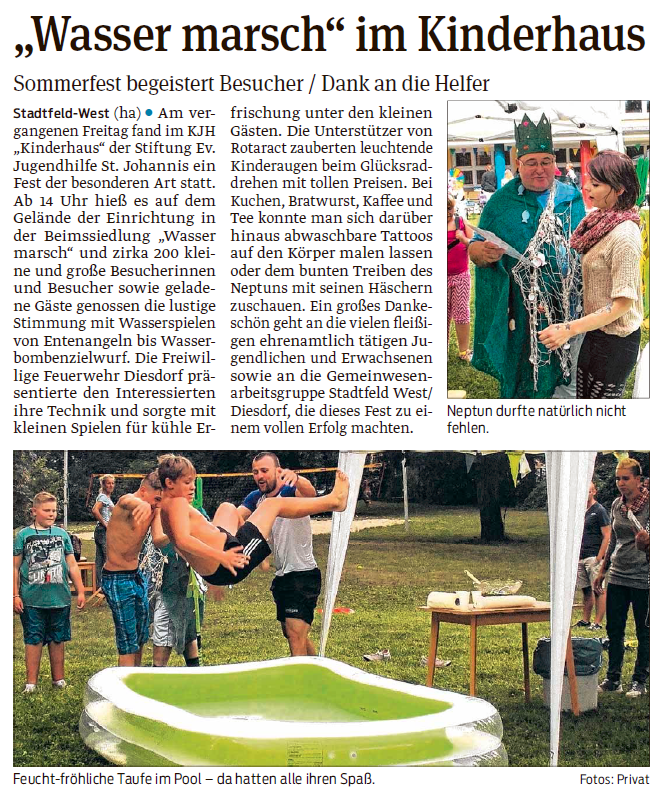 Sommerfest im KJH "Kinderhaus" Die Feuerwehr Diesdorf hat das KJH "Kinderhaus" bei der Durchführung ihres Sommerfestes am 05.08.2016 tatkräftig unterstützt. Vorheriger Beitrag: Planung zum Gerätehaus Zurück Nächster Beitrag: Sommerfest der IGS Willy Brandt Weiter