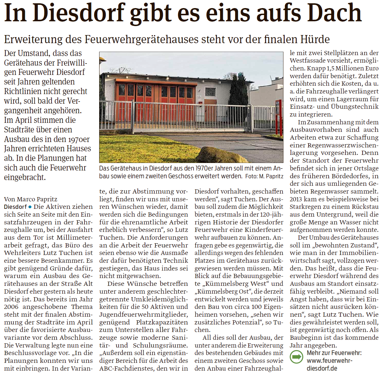 Umbau des Gerätehauses Der Umbau des Gerätehauses in Diesdorf steht kurz vor der Genehmigung Vorheriger Beitrag: Chronisten und Techniker gesucht Zurück Nächster Beitrag: Grundlehrgang erfolgreich unterstützt Weiter
