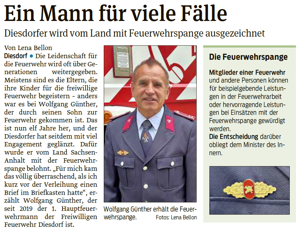 Bereits am Samstag den 09.09.2023 war unser Mitglied Wolfgang auf Einladung des Innenministeriums nach Gardelegen gereist.